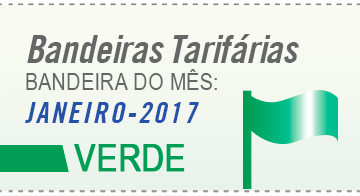 A bandeira tarifária para o mês de janeiro de 2017 é verde. Conforme relatório do Programa Mensal de Operação (PMO) do Operador Nacional do Sistema (ONS), a condição hidrológica favorável determinou o acionamento de térmica com Custo Variável Unitário (CVU) abaixo de R$ 211,28 por megawatt-hora (R$/MWh). O valor da térmica acionada ficou em 128,65 R$/MWh e possibilitou a manutenção da bandeira verde, sem custo para todos os consumidores de energia elétrica.